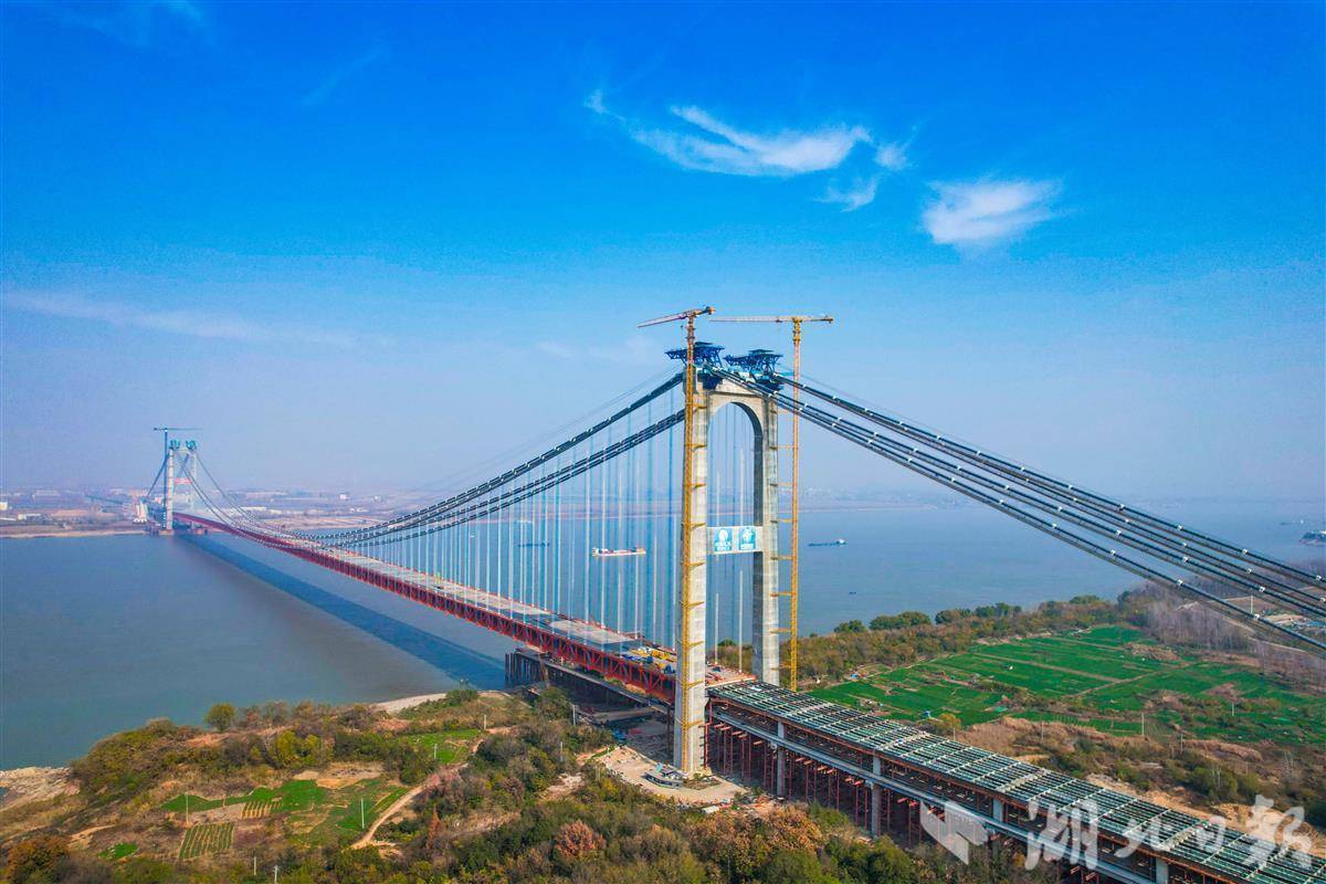 燕矶长江大桥横跨鄂州和黄冈两地,采用一跨过江的方式,是世界最大跨径的四主缆悬索桥。项目全长约26公里,大桥主跨1860米,上层为六车道高速公路,下层为四车道城市快速路。作为对接湖北国际物流核心枢纽机场的重大交通项目,燕矶长江大桥计划2026年建成,届时将成功打通沿线交通瓶颈,强化鄂州与黄冈两市的经济交通联系,黄冈至鄂州花湖国际机场实现15分钟直达,完善区域“公、铁、水、空”综合交通运输体系。