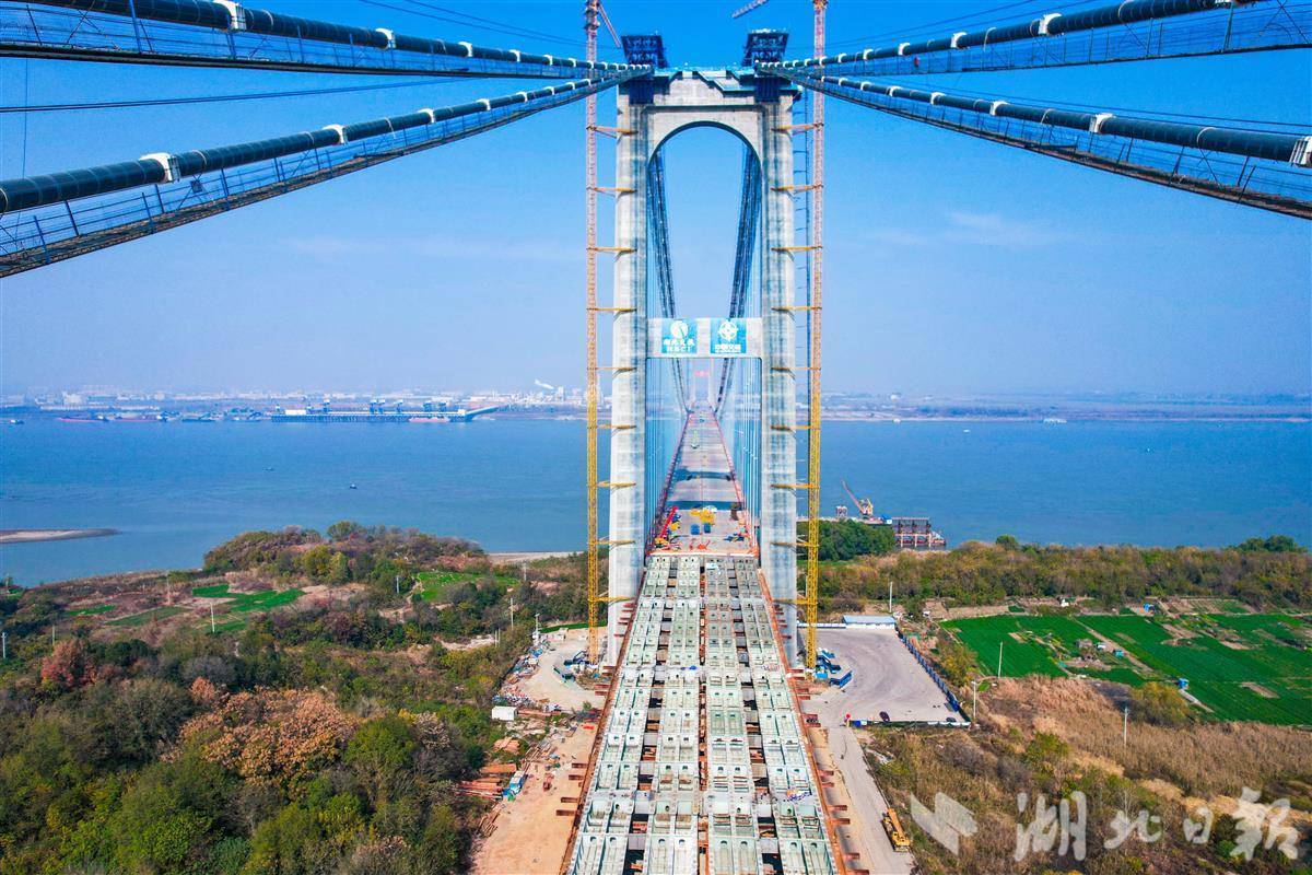 湖北日报讯 (记者戴辉、通讯员葛利龙、陆落义)12月7日,随着最后一榀钢混组合梁精准吊装到位,由湖北交投集团投资、中交二航局承建的燕矶长江大桥实现全线贯通。